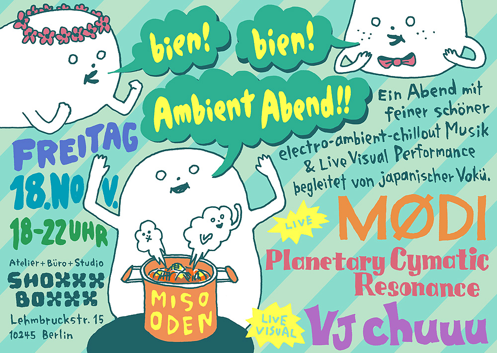 Ein Abend mit feiner schöner Elektro-Ambient Musik und Live Visual Performance, begleitet von Japanischer Vokü.