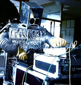 His performance combine dark samples, electro beats, crazed keyboards and RMC’s unique megafoned voice & performance.